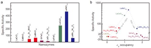 图1:考察 eg电子个数与钙钛矿氧化物的过氧化物酶活性之间的关系